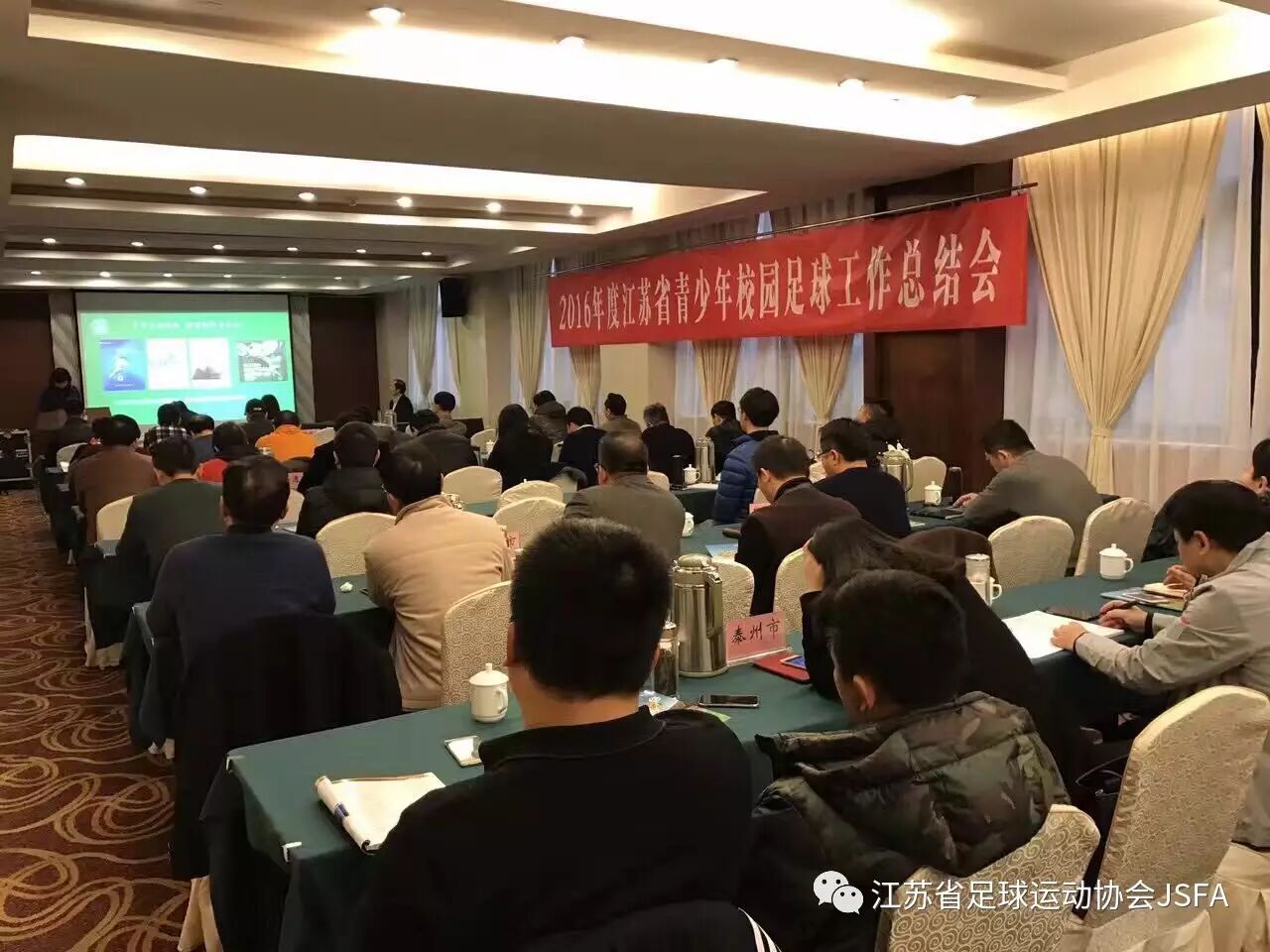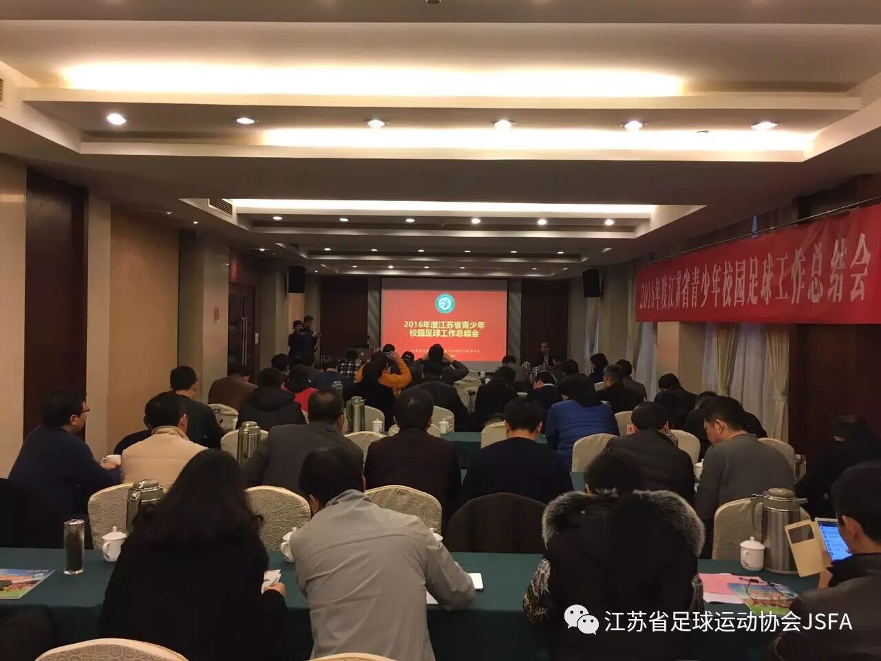 1月8日,全省青少年校园足球工作总结会在宁举行,省教育厅副厅长朱卫国,省体育局副局长王伟中,省教育厅体卫艺处处长张鲤鲤,省体育局青少处处长辛丽,省体育局青少处副处长李利出席会议。全省十三个市教育局、体育局分管副局长、市教育局体卫艺处处长、市校足办负责人参加会议。全省十三个市校足办对各市2016年校园足球工作进行了总结汇报,省校足办执行主任王建民对2016年我省校园足球工作总结并对2017年工作提出相应要求。省教育厅副厅长朱卫国,省体育局副局长王伟中做了讲话。