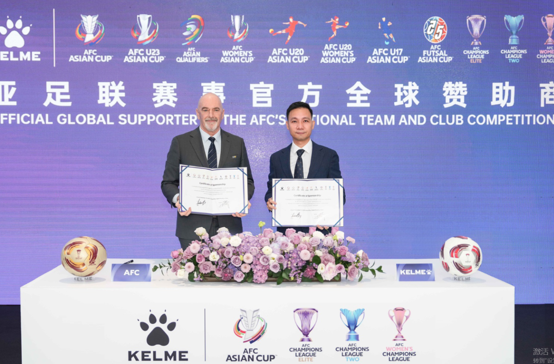 11月18日,卡尔美与亚足联在卡尔美总部举行签约发布会,亚足联商务部部长Andrew Rogers、亚足联市场合作负责人James Park、卡尔美体育董事长柯永祥出席了此次活动。双方宣布进一步深化合作关系,将合作扩展至2024-2029年并涵盖更多亚足联官方赛事。在此期间,卡尔美作为首个赞助亚足联赛事的中国体育用品品牌,以亚足联赛事官方全球赞助商的身份,为亚足联国家队赛事以及俱乐部赛事提供高水平专业装备支持。