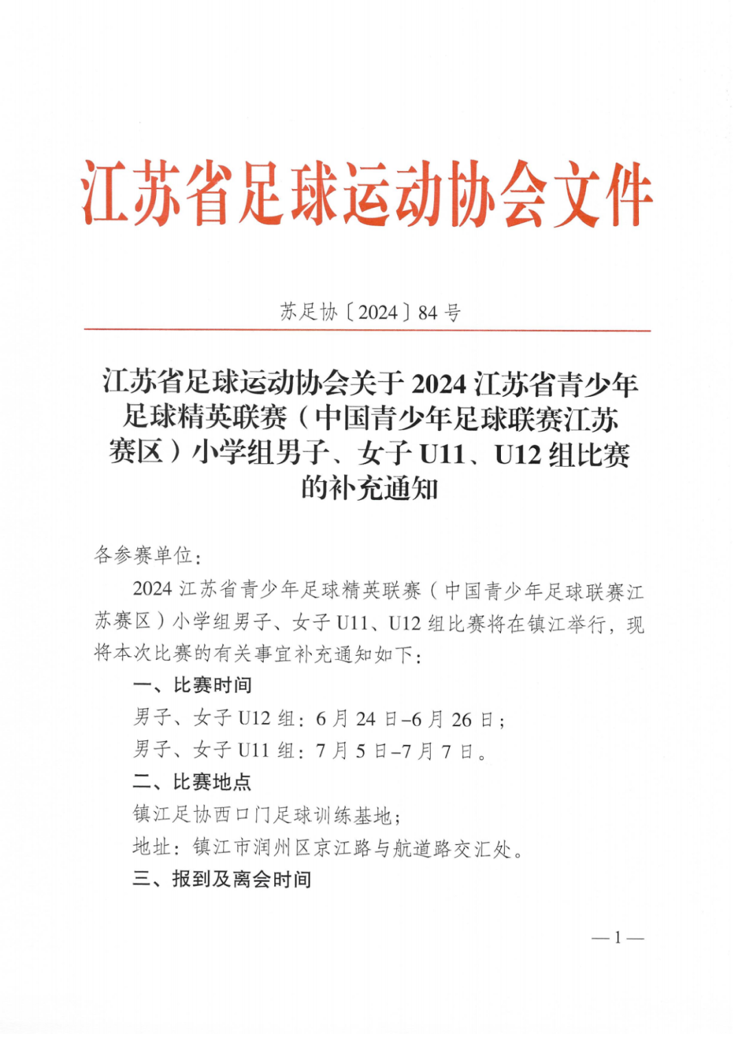 下一篇:青少年足球精英联赛 | 江苏省足球运动协会关于2024江苏省青少年足球精英联赛(中国青少年足球联赛江苏赛区)小学组男子、女子U10组比赛的补充通知