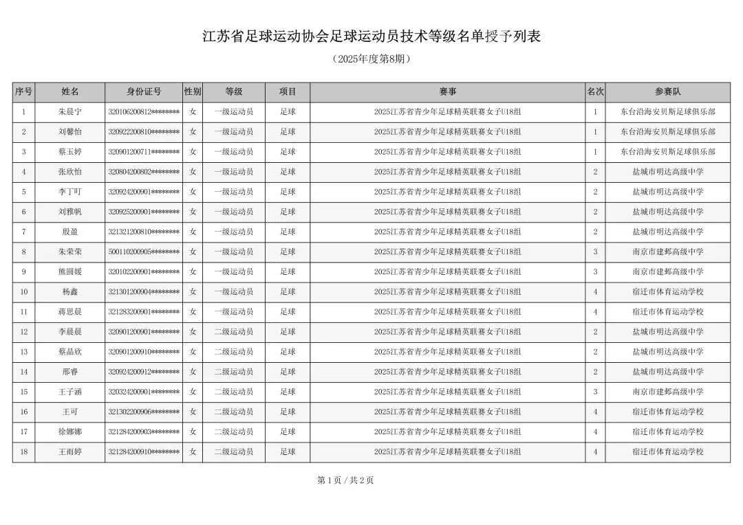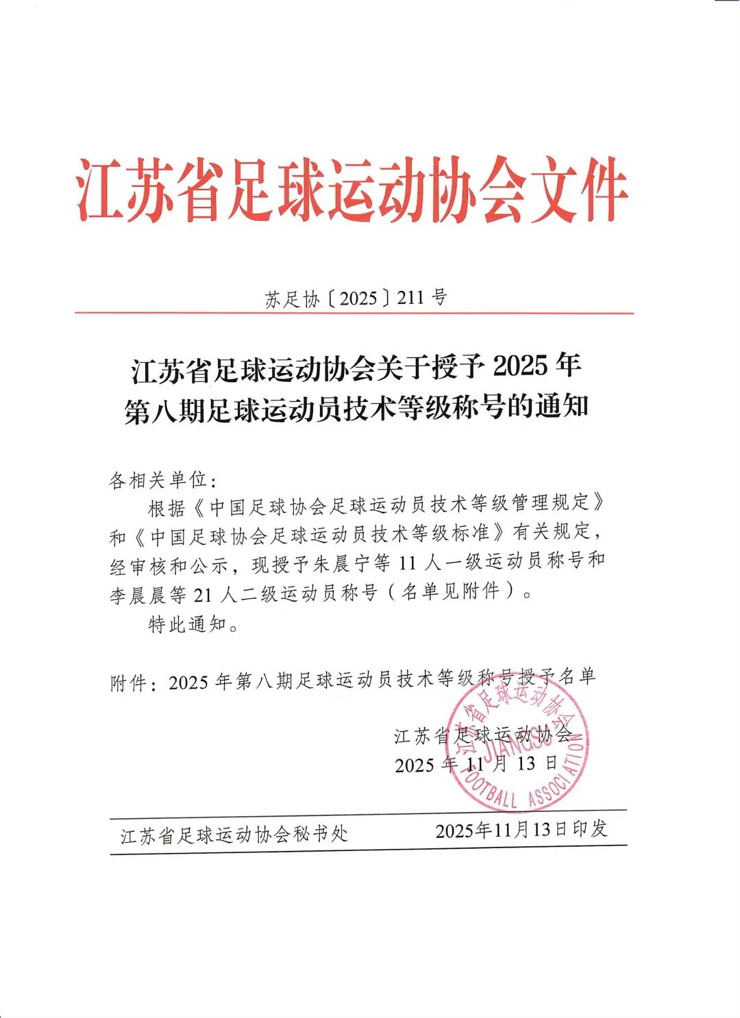 上一篇:江苏省足球运动协会关于授予2025年第七批足球运动员技术等级称号的通知